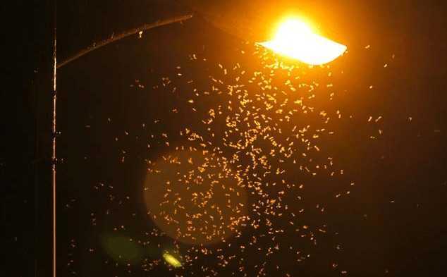 2、灭蚊灯周围不能有强光源照射,否则会影响诱蚊效果。可以看一下下面这张图,即便是普通的路灯,也能够吸引很多蚊虫过来。如此一来,室外灭蚊灯能够吸引到的蚊虫就被“分流”了。