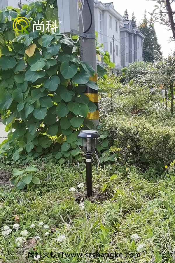 无蚊村绿化带中安装太阳能灭蚊灯